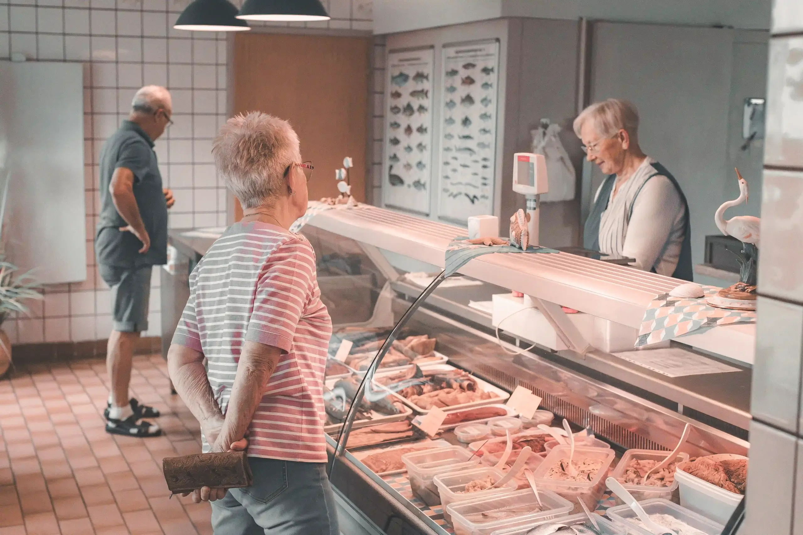 In unserem Laden verbinden wir Tradition mit Innovation. Wir verkaufen unseren Fisch direkt vom Hof – frisch, geräuchert oder auf Wunsch filetiert. Dazu sind wir auch kreativ und entwickeln neue Ideen, wie zum Beispiel unsere Salat-Kreationen oder leckeren Fisch-Frikadellen.